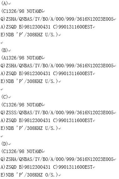 青岛流亭机场,自98年12月30日4时31分预计至99年1月31日16时,识别标志为“P”、频率为“308KHZ”的NDB导航台不工作,发布C1326/98。()