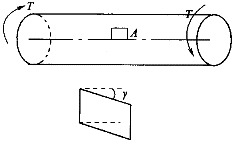 ,剪切模量为G,扭转变形后,圆轴表面A点处截取的单元体互相垂直的相邻边线改变了γ角,如图所示。圆轴承受的扭矩T为:()