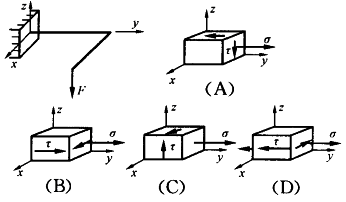 折杆危险截面上危险点的应力状态,现有四种答案:()