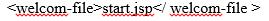 在JSP中myWebApp是一个web应用程序的根目录,当在浏览器中输入http://localhost:8080/myWebApp/时,会自动打开该目录下的start.jsp文件。为了达到这个要求,需要在web.xml中添加如下()代码。