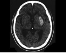 患者,男,70岁,有高血压病史10年,晨起大便时突发头痛,右侧肢体无力1天入院。体查:血压190/110mmHg,神志清楚,右侧鼻唇沟浅,伸舌偏右,右侧肌力4级。脑CT见如图所示病灶。