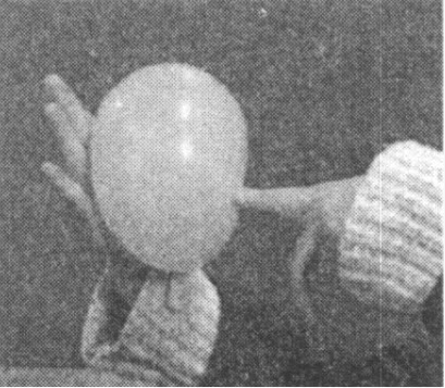 案例: 下面是某教师在“压强”一课中讲授影响压强的因素时的一个教学片段。 教师做了一个小的演示实验,如图用同样大小的力压气球,与手掌接触的那部分气球的形变较小,而手指顶着的那部分形变明显;用力越大,形变越明显,力作用的效果不同。