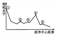 下图为某城市沿某方向地租水平与距市中心距离的关系示意图。完成问题。
