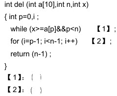 del函数的作用是删除有序数组a中的指定元素x,n为数组a的元素个数,函数返回删除后的数组a元素个数,请填(2)空使程序完整。