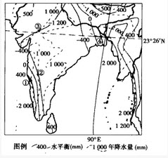 水平衡(年降水量减去年蒸发量)能反映某地区水分的盈亏。下图为世界某区域地图,读图回答问题。