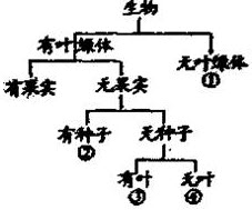 下图是某同学建立的生物分类图,其中①~④各代表一种生物,下列各组生物中不能用该图来分类的是()。