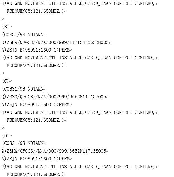 B:A系列98年第968号新航行通告:济南机场,自98年10月14日5时24分预计至99年7月1日16时,因新跑道不能使用,在新跑道中线每间隔300米画有关闭标志“X”。起飞和着陆时注意。