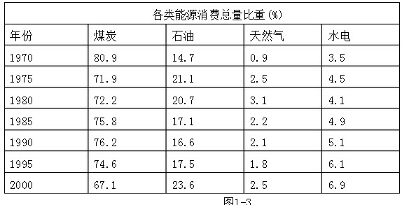 ①历年来煤炭在各类能源消费中所占比例最高②从1970年至2000年石油消费呈逐年递减的趋势③近五年该国加大力度开发石油、天然气资源,石油、天然气的消费增高,而煤炭消费比重降低④天然气具有价格低、污染少、安全等优点,人们对天然气的需求大幅度增加