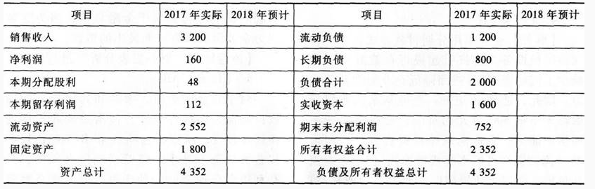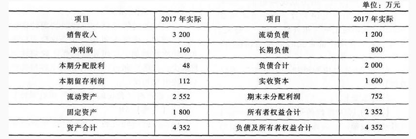 A公司2017年财务报表主要数据如下表所示:
