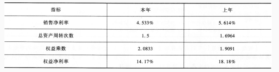 假设某企业本年与上年销售净利率、总资产周转次数、权益乘数以及权益净利率如下表。