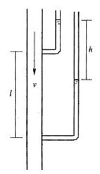 水在垂直管内由上向下流动,相距l的两个断面间,测压管水头差为h。如图所示。则两个断面间沿程水头损失为()。