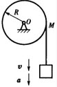 半径为R的滑轮上绕一绳子,绳与轮间无相对滑动。绳子一端挂一物块,在图示位置物块有速度v和加速度a,M点为滑轮上与铅垂绳段的相切点,则在此瞬时M点加速度的大小为()。