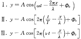 一平面简谐波沿x轴正向传播,已知波长λ,频率ν,角频率w,周期T,初相Φ,则下列表示波动方程的式子中,哪几个是正确的?()