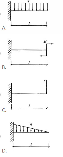 图示四个悬臂梁中挠曲线是圆弧的为()。