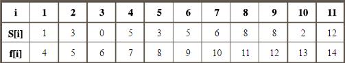 有11个待安排的活动,它们具有下表所示的开始时间与结束时间,如果以贪心算法求解这些活动的最优安排(即为活动安排问题:在所给的活动集合中选出最大的相容活动子集合),得到的最大相容活动子集合为多少?