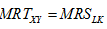 假定一个经济,在其中只有两种商品(X和Y),两种生产要素(L和K),那么要想达到生产的全面均衡的条件是()。