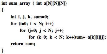 假定数组元素在主存按从左到右的下标顺序存放。试改变下列函数中循环的顺序,使得其数组元素的访问与排列顺序一致,并说明为什么修改后的程序比原来的程序执行时间短。