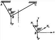 ,许用应力[σ]1=160MPa;BC杆为铜杆,横截面面积A2=700mm