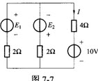 在如图7-7所示电路中,当未接10V理想电压源时,I=5A,接入后,I将变为()A。