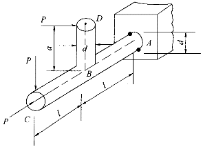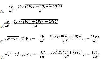 图示钢制竖直杆DB与水平杆AC刚接于B,A端固定,P、ι、a与圆截面杆直径d为已知。按第三强度理论,相当应力σ