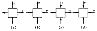 在图示四种应力状态中,关于应力圆具有相同圆心位置和相同半径者,有下列答案:()