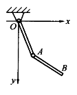 在定平面Oxy内,杆OA可绕轴O转动,杆AB在点A与杆OA铰接,即杆AB可绕点A转动。该系统称为双摆,其自由度数为:()