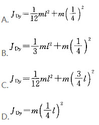 图示匀质杆AB长ι,质量为m。点D距点A为1/4L。杆对通过点D且垂直于AB的轴y的转动惯量为:()