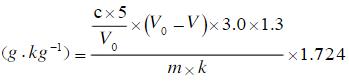 采用水合热重铬酸钾容量法测定土壤有机质时,结果的计算公式为土壤有机质