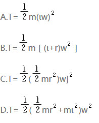 忽略质量的细杆OC=L,其端部固结匀质圆盘。杆上点C为圆盘圆心。盘质量为m,半径为r。系统以角速度w绕轴O转动。系统的动能是:()
