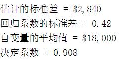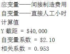 新产品的间接制造费用还没有估计。但是过去24个月的每月总生产和间接制造费用的数据用线性回归进行分析。以下的结果来自于简单回归法,用于估计新产品的间接制造费用。