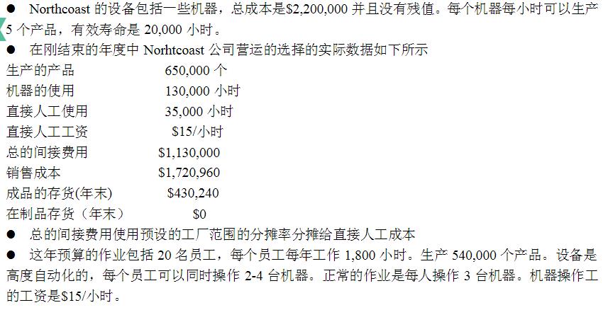 Alpha公司生产几种不同的产品,并计划推出一种新产品,单位售价是$6。以下是对第一年要生产的100,000个产品的制造成本的估计。 直接材料:500,000
