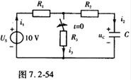 如图7.2-54,已知电路在t=0s时刻和t=1s时刻出现两次换路。如果R1=R2=R3=10Ω、C=200μF,uC(0-)=0,那么如下描绘电容电压uC变化规律的波形是()。