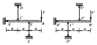①F>F′;②F<F′;③F值完全取决于杆EF的稳定性;④F′值完全取决于杆C′D′的稳定性。有四种答案: ()