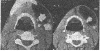 (单选题)CT示右侧腮腺深叶增大,边缘模糊,有增强,病变内可见少量气体影,诊断为()