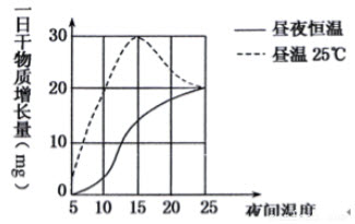 A:昼温为25℃时.植物生长最快的夜间温度是15℃