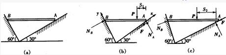 如图所示,板长为Z,水平地置于直角槽内,已知板的A端与槽面间的摩擦系数为f,B端摩擦不计,若不计板重,则重为P的人站在板上能使板保持水平,其位置应为()。