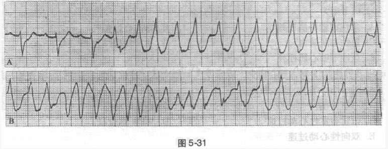 患者男性,63岁,冠心病史,近来发生晕厥2次。住院期间发生阿-斯综合征,并记录到如下心电图(图5-31),应诊断为()。