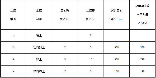 大面积堆载试验时,在堆载中心点下用分层沉降仪测各土层顶面的最终沉降量和用孔隙水压力计测得的各土层中部加载时的起始孔隙水压力值均见下表,根据实测数据可以反算各土层的平均模量,指出第③层土的反算平均模量最接近下列( )个选项