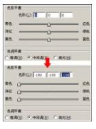 如图所示:当图像使用色彩平衡命令进行调整时,当调整参数从上图变化到下图时,图像将有什么样的变化:()