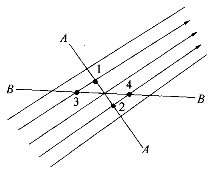 图示一流线夹角很小、曲率很小的渐变流管道,A—A为过流断面,B—B为水平面,1、2为过流断面上的点,3、4为水平面上的点,各点的运动物理量有以下哪种关系?()