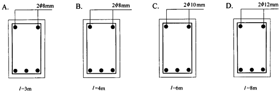 受弯构件架立筋的配置如图所示,其中哪个图的配筋是错误的(l为跨度)?()