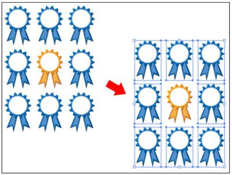 B: 用Selection Tool(选择工具)全选所有的徽标,再按住Shift键,单击橙色的徽标