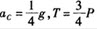 均质杆AB长为l,重为P,用两绳悬挂如图示。当右绳突然断裂时,杆质心C的加速度ac和左绳拉力T的大小为()。
