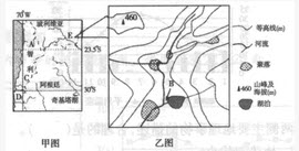 下面甲图为南美洲局部地区图,乙图为甲图中E地区的地形图。读图回答问题。