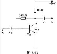 某放大电路如图7-53所示,已知三极管电流放大系数β=50,,静态时等于()V。