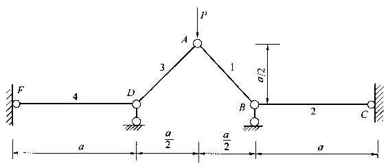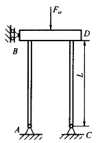 两根完全相同的细长(大柔度)压杆AB和CD如图示,杆的下端为固定铰链约束,上端与刚性水平杆固结。两杆的弯曲刚度均为EI,其临界载荷F