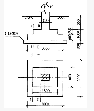 某建筑物阶梯形柱下独立基础,如图所示,柱子截面尺寸为0.8m×0.6m,基础底面尺寸为3m×2.2m,基础上阶截面尺寸为1.8m×1.0m,经计算,相应于作用的基本组合时的地基平均净反力pj=300kPa。基础混凝土采用C20级(fT=1.1N/mm2)。取aS=50mm。