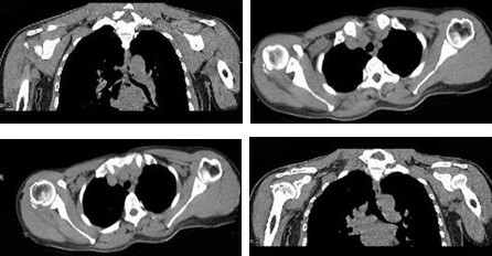 男性,65岁,右髋部疼痛跛行半年,伴低热,盗汗,纳差及体重减轻。查体:右髋关节屈曲畸形,活动受限,Thomas征阳性,X线片示右髋关节间隙变窄,关节面有骨质破坏,右髋臼有直径2cm大小空洞,内有小死骨形成。