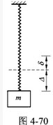 如图4-70所示,常数为k的弹簧下挂一质量为m的物体,若物体从静平衡位置(设静伸长为δ)下降△距离,则弹性力所做的功为()。