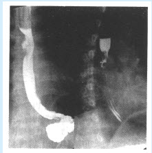 A:管腔狭窄,钡剂分流